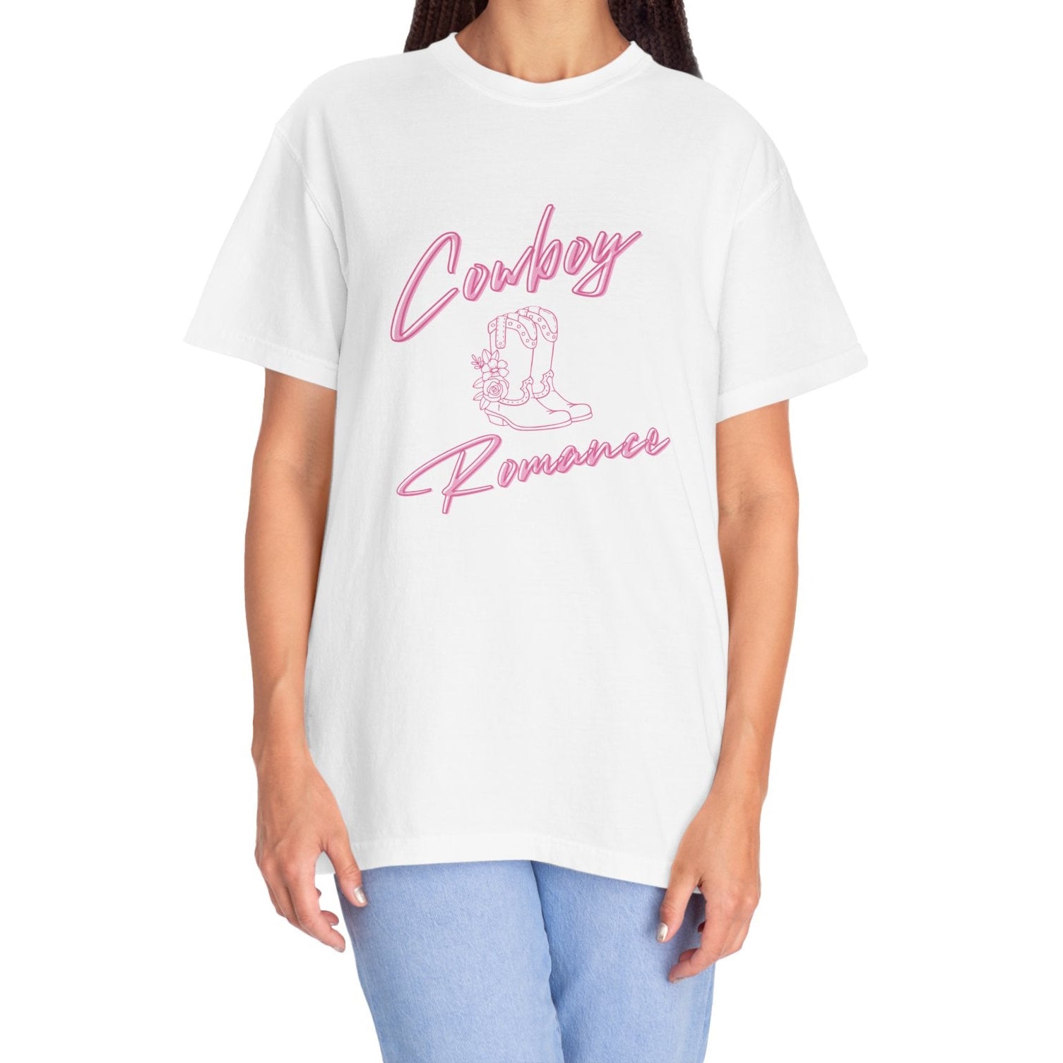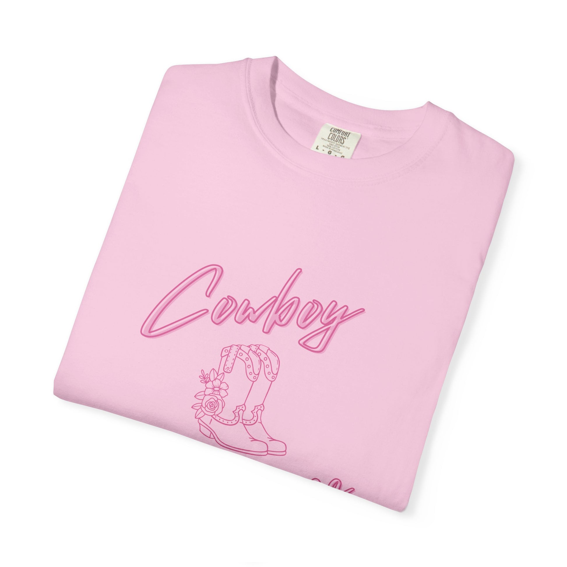 Introducing the Cowboy T-Shirt by Comfort Colors – a tee crafted from 100% ring-spun cotton for unmatched softness and durability. This shirt features a soft-washed, garment-dyed fabric that adds a cozy, lived-in feel to your wardrobe, perfect for everyday wear. Its relaxed fit offers all-day comfort, while double-needle stitching throughout enhances its long-lasting quality. Designed without side seams, the Cowboy T-Shirt maintains its classic tubular shape wear after wear. Whether you're chasing sunsets or relaxing at home, this tee brings timeless comfort and rugged charm to any look.